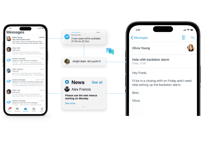 Meddelelser spredt ud over Whatsapp, e-mails og udskrifter? Plandays Kommunikation-hub sørger for, at alle er på samme side.