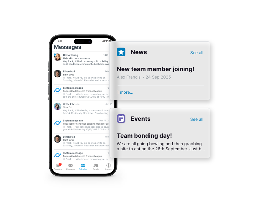 Communicate with your teams instantly, and give staff a direct line to their manager.
