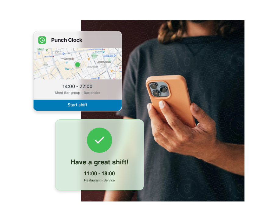 Staff can clock in and out of shifts on their phone, for pinpoint time tracking.